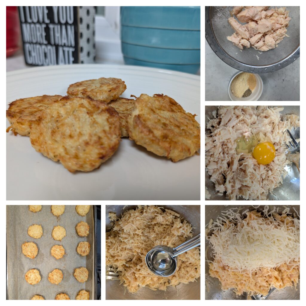 - Add drained chicken and *shred*, then mix into beaten egg until well-combined.