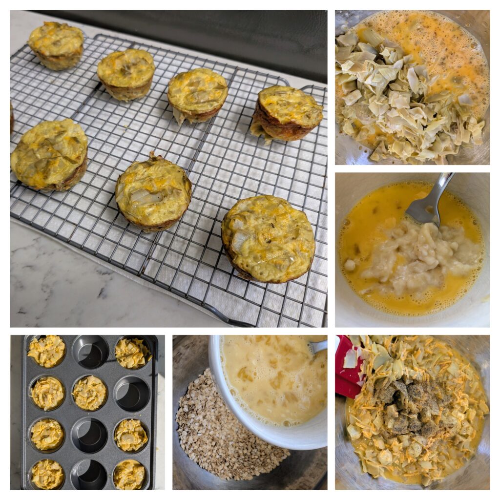 6. Stir in the sautéed onion & garlic mixture, 3/4 cup shredded extra sharp Cheddar cheese, and 8 oz chopped artichoke hearts.