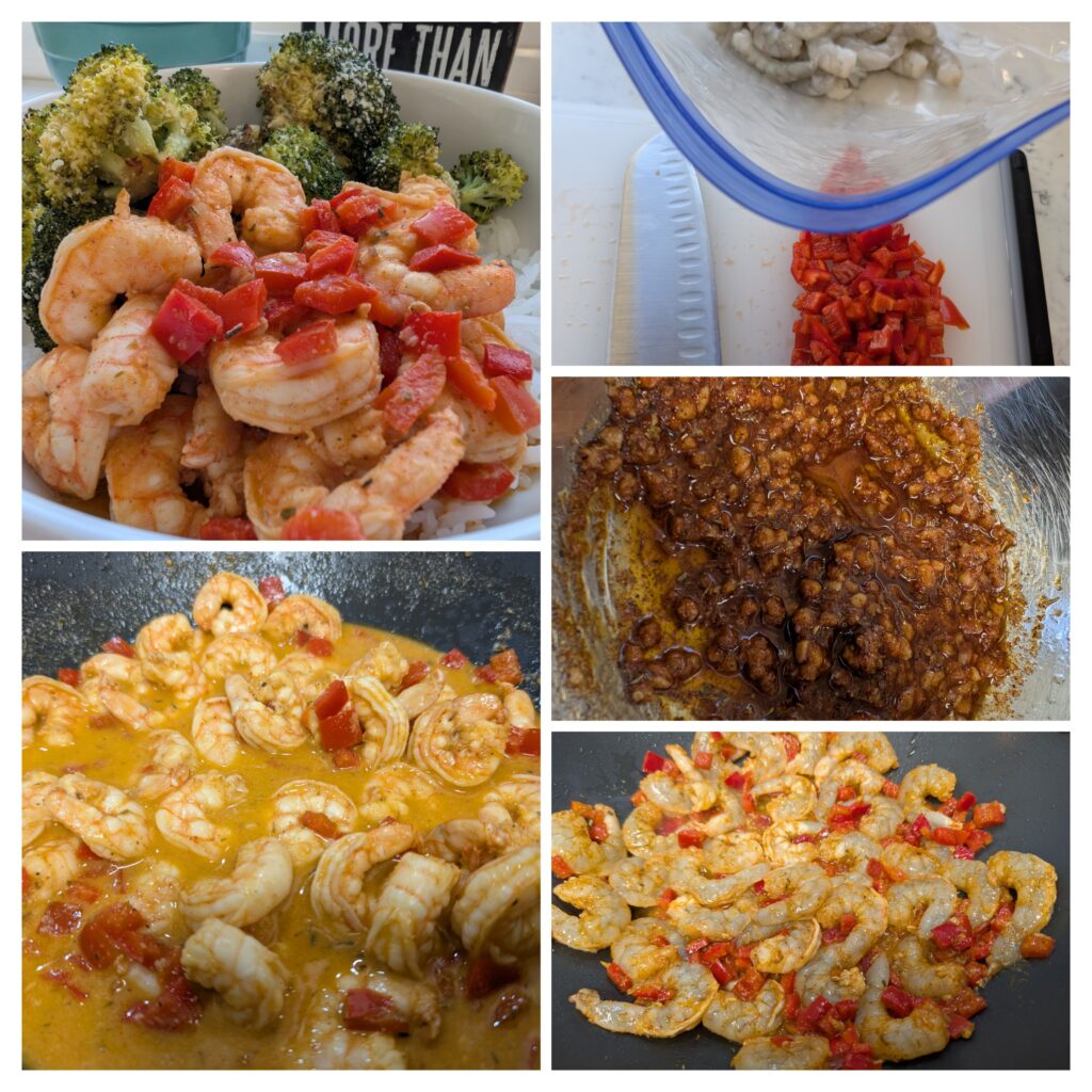 1. To a gallon-size zip-top bag, add 1 lb shrimp and 120 g diced red bell pepper.