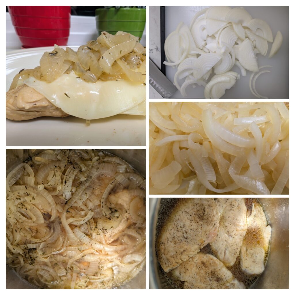 This morning, I finally sat down to figure out ingredients and how I thought I could make it in the IP. Then I tweaked it b/c I wanted to caramelize the onions before pressure cooking. Then I tweaked it again b/c I wanted to sear the chicken before pressure cooking. Then I tweaked it once more b/c I wanted the cheese to melt nicely on the individual servings. Finally, it looked good on paper so I made it for dinner – and of course made a couple of tweaks along the way. Whew! Welcome to how my thought process goes down the rabbit hole with crafting recipes. ![]()